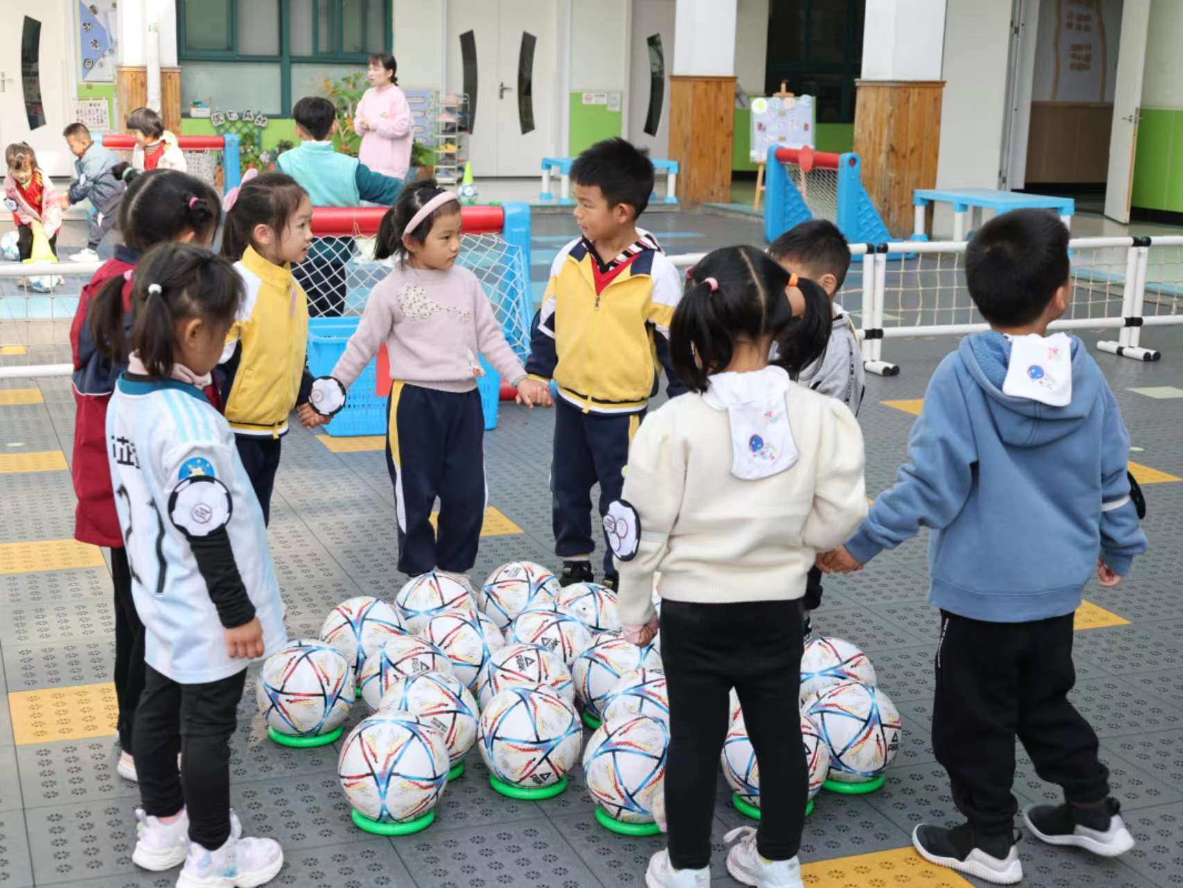 杭州萧山新塘第一幼儿园足球游戏吸引《幼儿园体育活动拓展与教学》培训班老师观摩研讨