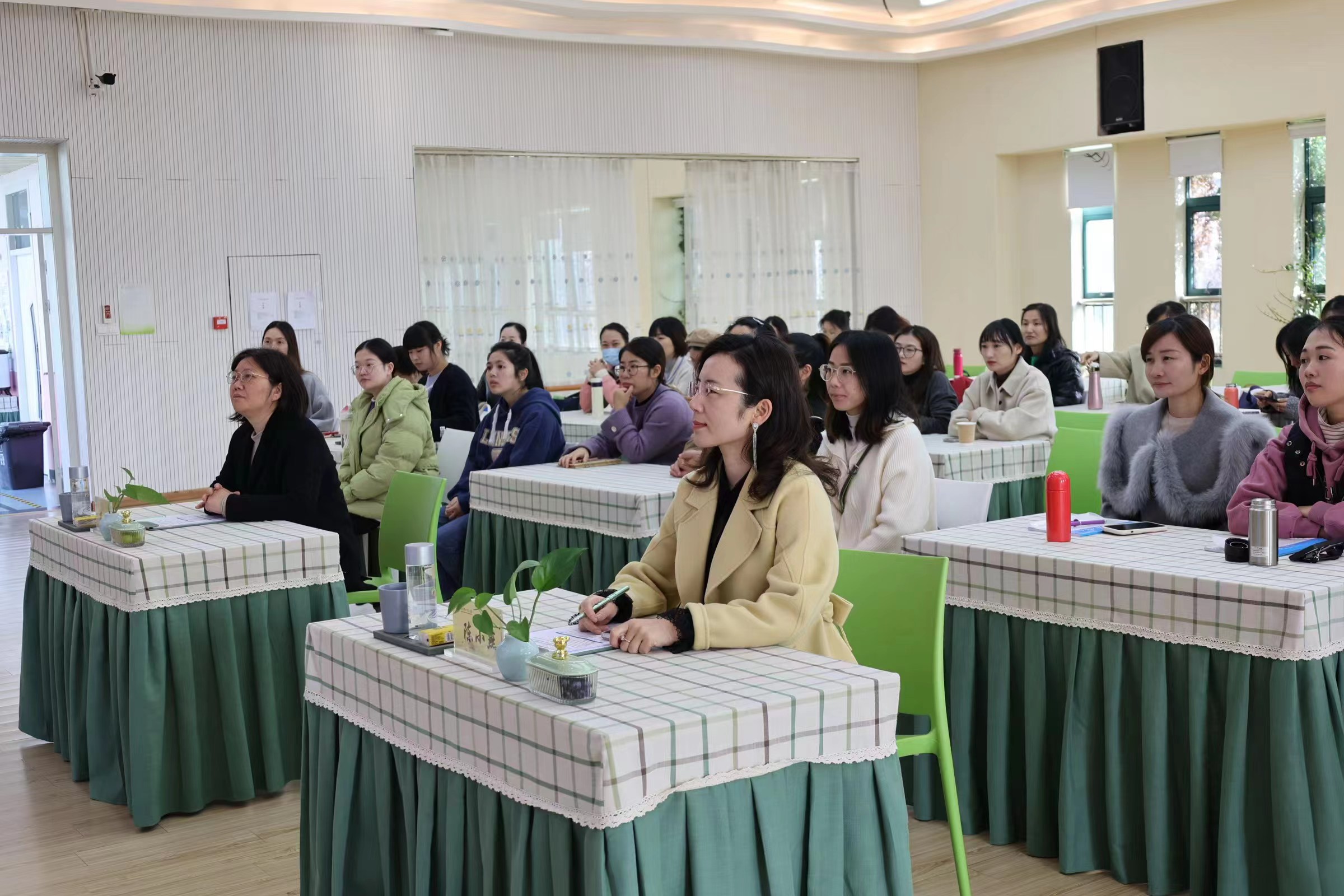 最后,60余名培训班老师根据对足球游戏和场馆游戏的直接观摩、直观感受,围绕幼儿园体育活动拓展与教学进行广泛而热烈的研讨交流,思想火花在碰撞中迸发。新塘第一幼儿园沈飞、傅多佳和许灵芝3位老师,分别作了题为《从“足够精彩”到“新 氧力”健康课程的转型思考》《三营六场:幼儿足球活力 体验场构建与运作的实践研究》和《纾于·基于·乐于 —<评估指南>背景下幼儿运动 品质可视化研究》的经验分享。