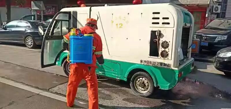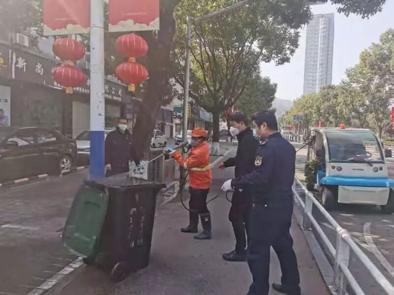 每日用含有效氯浓度500 mg/L消毒剂落实专人利用快速保洁车、三轮车对辖区内的果壳箱、垃圾桶进行全面喷洒消杀,垃圾确保日产日清。并利用装有消毒液的冲洗车对环卫休息厅、公交车站台等进行全面消杀,对有污渍人行道、卫生死角等地段加大消杀频次,降低传播风险,积极做好疫情防控工作。